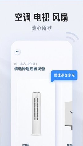 万小能遥控器智能app是一款专业的手机遥控器工具,可以充当多设备手机遥控器,支持的家电设备品牌多,包含了空调、电视、投影仪和机顶盒等设备,可以随时添加设备进行操控,只要能连接上就可以手机遥控使用,随时一键开关换模式。