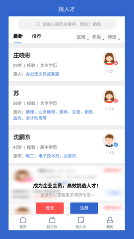 3、给所有求职者提供了各种企业招聘信息以及便捷的求职简历发布服务。