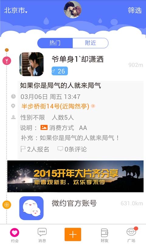 【约会交友】与周边的人发起聚会活动,让彼此不再陌生;