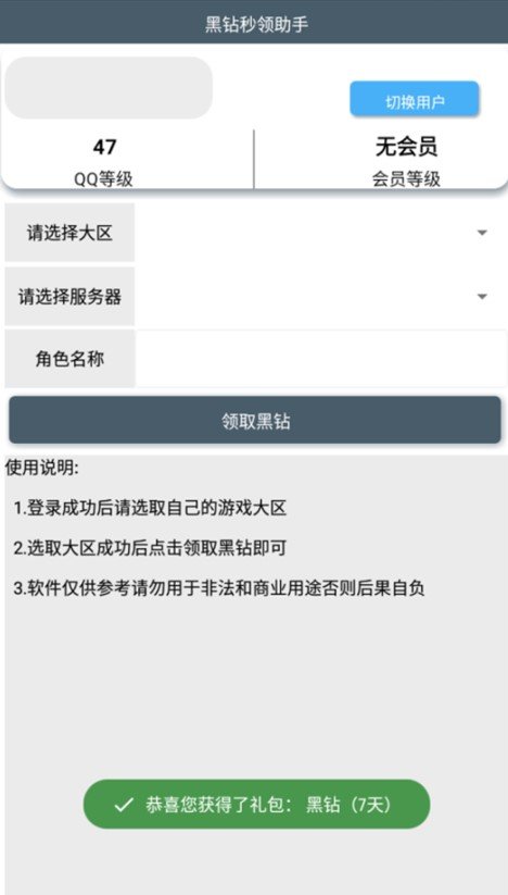 2.选取大区成功后点击领取黑钻即可