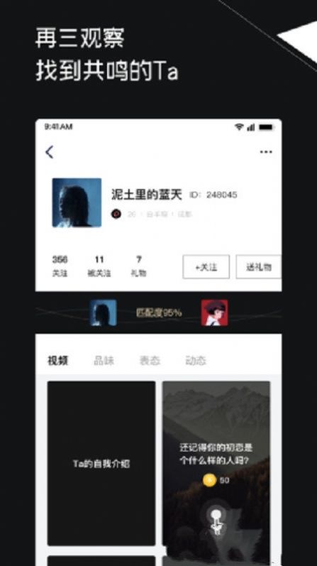 1、会为用户提供与其他人的在线匹配度,对于匹配度高的用户进行关注,就可以查看到ta实时更新动态的消息提醒了,在第一时间的去聊天互动。