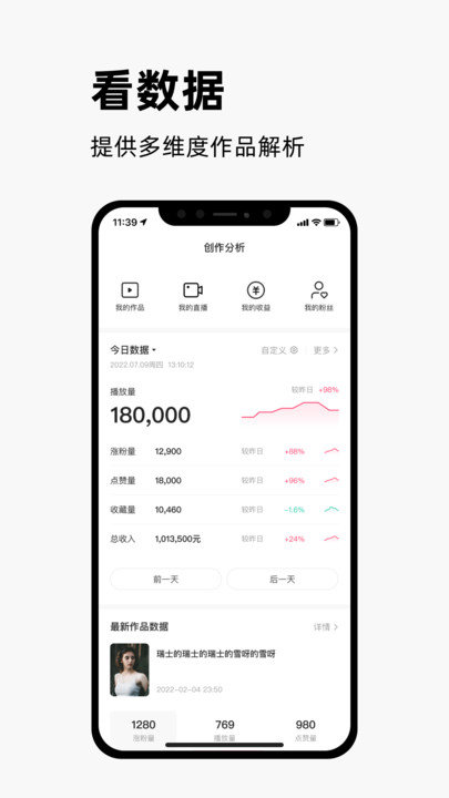 软件是快手官方推出的,旨在面对各种短视频内容的创作者,通过软件为创作者提供强大的运营管理、数据分析,更好的服务每个创作者短视频创作者更加方便高效地分析数据。
