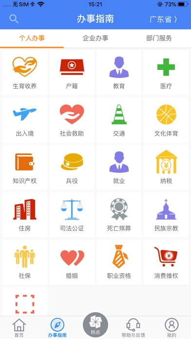 1、个人办事、法人办事、部门办事。为您提供贴心的办事指南