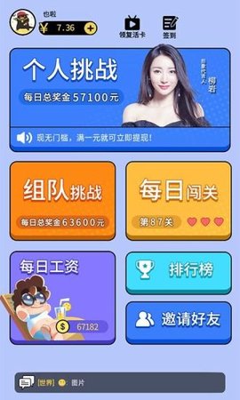 最强答人app一款益智类答题游戏软件app,在软件里面玩家可以和女神挑战不一样的游戏关卡模式,每一个游戏模式都能给用户带来不一样的游戏体验,玩起来一点也不乏味,简单的答题,每天轻松挑战瓜分现金红包,快来下载吧。