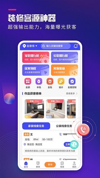 1、基于对装修行业的深度洞察打造精准获客系统,显著降低企业营销成本,有效提升签单成功率。