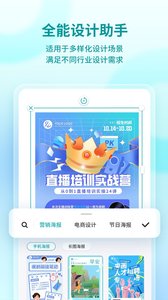 来画设计app是由深圳市前海手绘科技文化有限公司打造的一款非常好用的手机海报营销设计软件哟,为用户们提供了各种类型的素材都是可以免费使用的,操作非常的简单,可以满足不同行业的设计需求,帮助用户们设计出作品哟,有需要的用户不放前来下载使用吧。