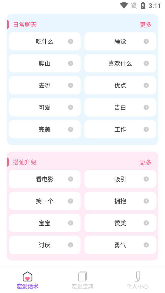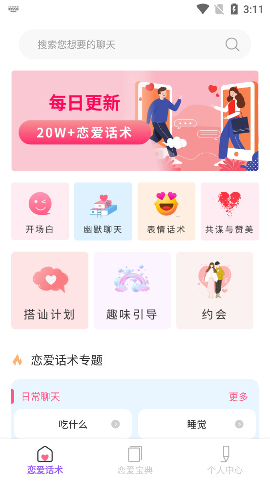 1、情话搜索功能,让你快速找到适合场合的甜言蜜语。