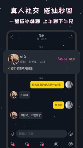 1、有颜有趣年轻小哥哥小姐姐聚集于此,每天发生近百万次的相遇,声音、颜值、灵魂匹配,轻松快速邂逅心动的另一半。