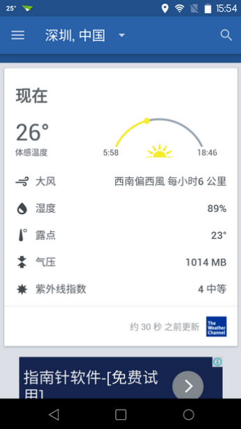 1、三星手机天气预报软件的界面非常简洁,能够为用户随时提供准确的天气预报。