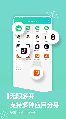 全球首创应用多开分身功能,更稳定的双开精灵,完美支持绿色多开所有应用无限多开,依托独立内存管理机制,手机无限多开不卡顿;