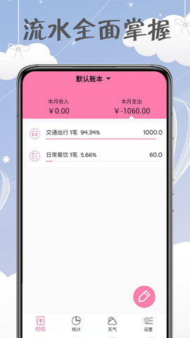 1、界面简约美观的手机记账软件,随时随地记录每一笔开销,智能统计分析,各种消费情况一目了然。软件还支持心情记录功能,手机记账更轻松。