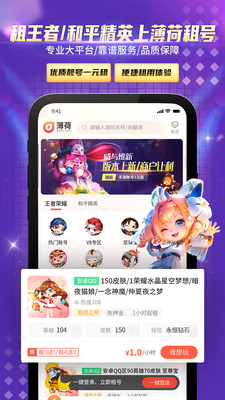 薄荷app是一款专业的手机游戏账号租赁软件,为用户提供了各种手游网游的账号租赁,让我们享受高端玩家的游戏体验哟,新人下载还有很多奖励可以领取,不管你需要什么游戏账号薄荷app都能满足你的需求。