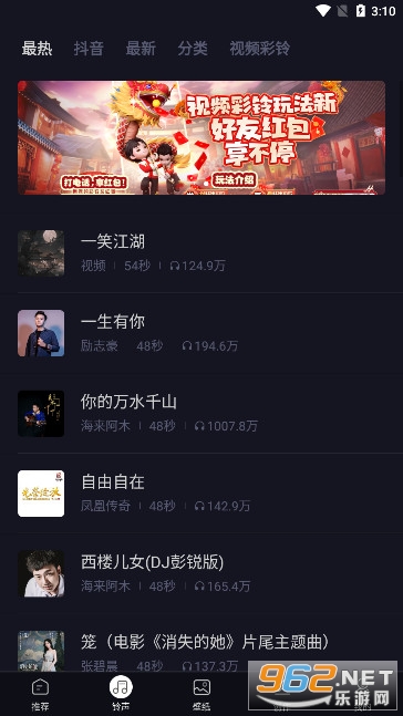 1、在本网站下载安装来电秀秀秀视频铃声,打开首页,找到主页面的“来电秀”