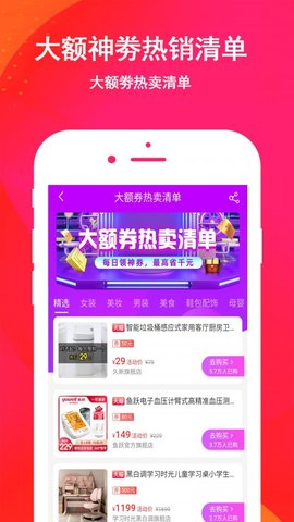 2、用户在软件中能够找到多种类型的商品信息,根据自己的生活需求快速领券购买;