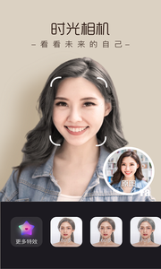 一起变老:用户可以选择立刻拍照,或是上传图片,只需短短几秒钟就可以得到在未来变得年老以后的脸部皱纹情况。这样的照片借助了先进的AI预测技术,可以满足用户在闲暇时间的新奇体验需求。