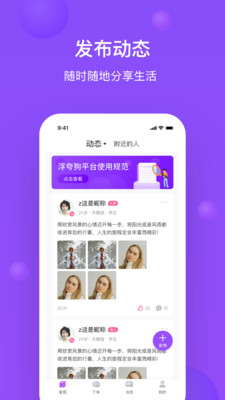 浮夸狗app是一款非常好用的社交软件,大家能够随时在软件上发布动态随时随地分享生活,用户们信息都是非常真实有效的,让大家能够全方位了解彼此,需要的用户们就前来下载使用吧