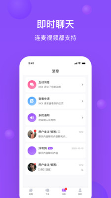 浮夸狗app支持多种聊天模式,可以一起在线开黑打游戏,娱乐的同时了解彼此,增进两人之间的感情,无聊的时候也能打发时间,都是不错的选择,感兴趣的用户快来体验吧。