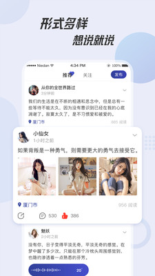 1、分享交友,发布动态