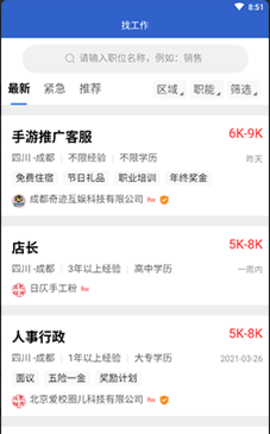 成都人才招聘网是一款官方推出的线上移动端服务平台,助力广大成都求职群众更好的进行工作匹配,各种企业公司的招聘信息一目了然,真实可靠,定期更新拒绝弄虚作假,欢迎下载