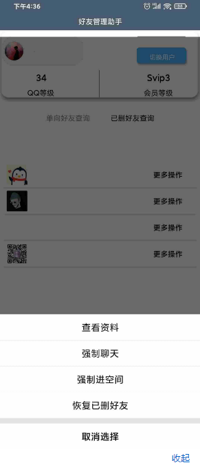 管理助手app是一款非常智能的手机qq好友管理软件,能够帮助用户们一键查看谁删了你你删了谁,功能非常的强大,还有强制进空间、强制聊天等功能,操作简单方便能帮助我们更好的管理自己的好友。