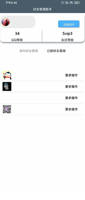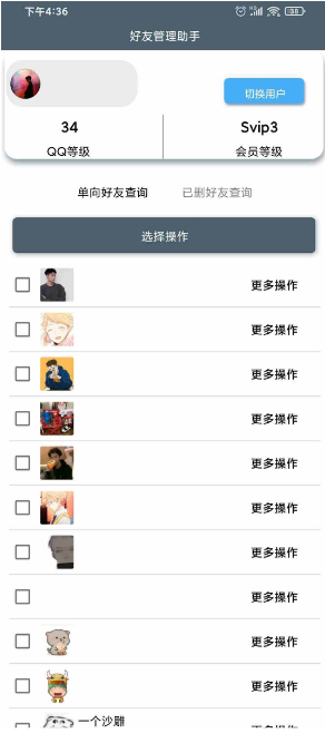 管理助手app可以帮助用户一键批量删除好友,或者添加好友,也可以在线检测单项好友,及时进行删除,给好友进行分组,操作起来非常便捷。