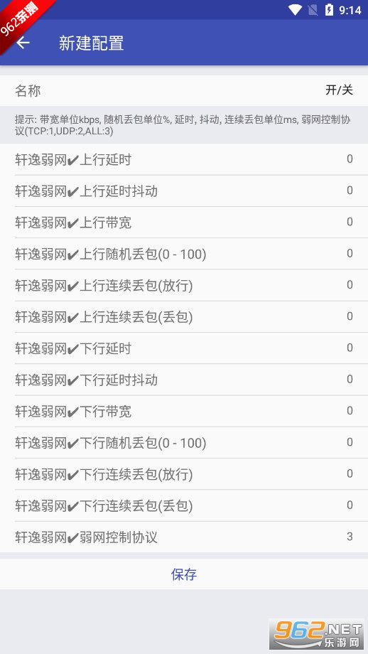 2、设置弱网名称及各项参数,完成修改后点击保存。