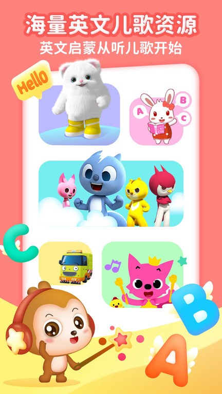 1、平台精选英美国家经典儿歌资源,系统整合鹅妈妈童谣、Little Fox等知名系列,通过原声演唱与动画演绎打造沉浸式语言环境。