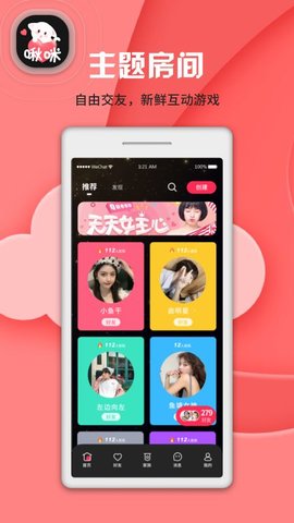 4、创建房间,你也可以创建自己的语音房间,之后邀请好友就能一起聊天。