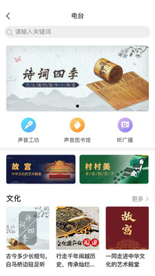 1、拥有多种电台服务专区,这里设置了声音工坊、声音图书馆以及听广播专区;