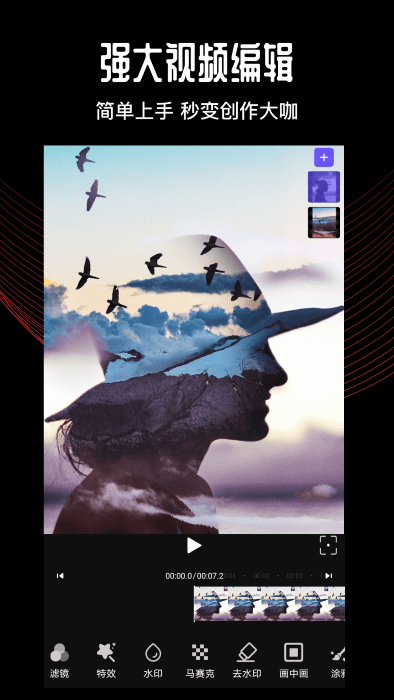 卡图视频编辑是一个视频使用功能的软件,视频裁剪的专业工具,视频剪辑,视频制作,视频编辑,vue视频编辑专注于短视频剪辑,小影片拍摄,vue视频编辑,胶片滤镜、自拍、大片特效、动画贴纸、视频美颜、视频合并、视频制作、相册视频、api特效、mv特效、ae特效、马赛克、海量音乐。