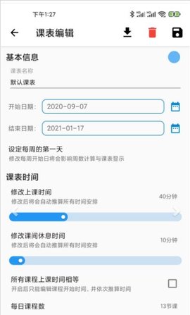 2、每天需要学习的各个科目和上课时间都能自由编辑,还能导入日历和导出文件