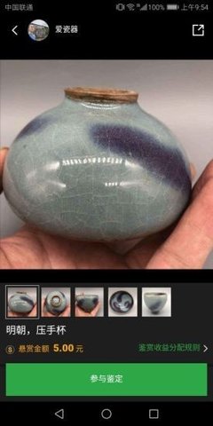 易鉴网app为你提供专业的鉴定服务,这款软件功能非常强大,可以鉴定多种类型的文玩,包含瓷器、玉器、铜器等等,并且操作流程非常的简单,用户只需拍照上传即可轻松鉴定,有需要的朋友欢迎前来下载体验。