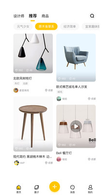 3、社交板块,家居分享社区,用户分享自己的房间搭配方案,家居好物分享平台