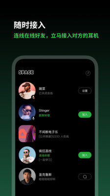 SPACE设定为一个共享耳机的虚拟宇宙,你可以像宇航员一样连线不同的人,听听对方听的歌、说的话。你如果自己也愿意,也可以开放连线,等待接入。