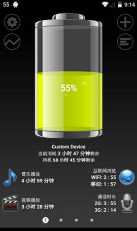 ●显示手机各种消耗的电量记录,比如播放音乐、互联网浏览、WiFii、播放视频等