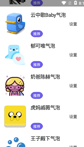 1、后台挂机运行,选择好喜欢的气泡种类后点击设置即可