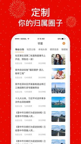 1、资讯,各种不同的社区资讯可以让用户通过平台了解,并进行相互分享。