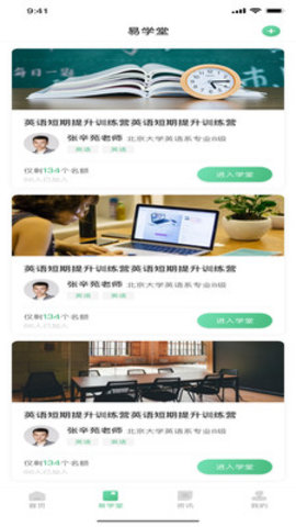 易本教师端app让教学管理更轻松,这款软件功能非常强大,用户可以在这里获取最权威的考试资讯,这里还拥有丰富的教学资料和素材,各位老师们也可以查看学员的学习进度,有需要的朋友欢迎前来下载体验。