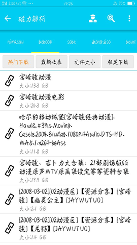bt搜索神器app拥有多个种子搜索引擎,智能推送高质量的资源,包括磁通、迅雷、BT等资源,通过关键词就可以快速的搜索视频、动画以及番号等等,全网高清资源流畅播放,轻松体验视觉盛宴。