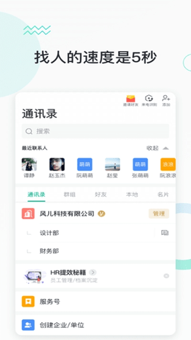 「企业通讯录」无需重复添加通讯录,5秒快速找人