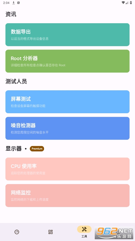 4、还有很多实用小工具,包括数据导出、Root分析器和屏幕测试等。