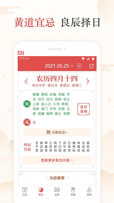 3、通过日历功能查看当天详细黄历,包括财神方位与吉神宜趋,安排重要事务参考宜忌。