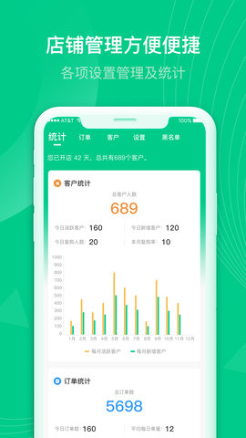 1、店铺管理方便便捷:各项设置管理及统计