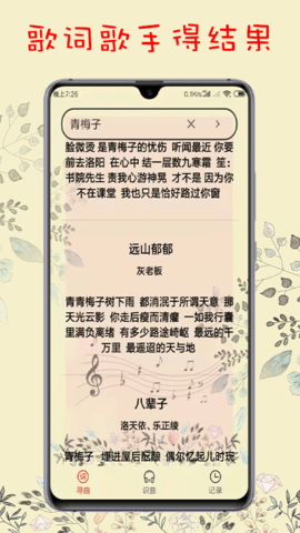搜歌识曲app帮你轻松找到喜欢的歌曲,这是一款功能强大的听歌识曲软件,在这里用户可以根据歌词、音乐搜索到歌曲名称,不管是输入歌词,歌手,还是旋律等都能出现精准的结果,帮助用户快速找到喜欢的歌曲,喜欢听歌的朋友千万别错过了,赶紧下载体验吧。