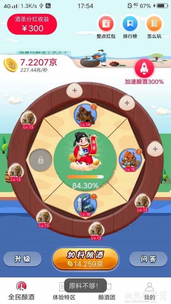 1、点击加料产酒”,消耗原料,购买酿酒物品;