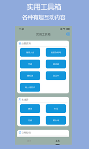 提供了科学小试验、益智竞猜等多方面工具。可作为您日常生活,或与孩子教育互动时的工具箱。