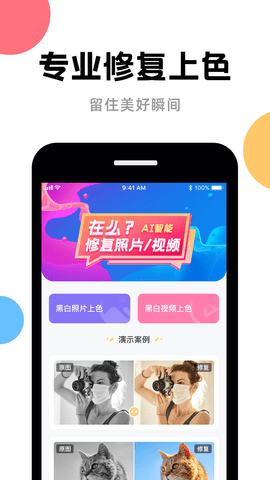 AI修复app利用先进的AI技术,对照片进行黑白上色、无损放大等处理、并支持视频的无损放大,一键修复等功能。