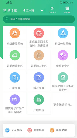易得共享app让废旧物资回收更便捷,这款软件提供了废旧物资行业必备的信息共享平台,支持废品回收、处理、一键发布信息等功能,旨在提供废旧物资处理服务,有需要的朋友快来下载体验吧。