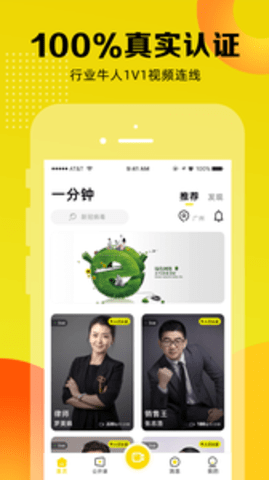 一分钟app主打通过一对一视频咨询问答的方式帮你解决工作和生活中可能出现 的任何问题,以让每个人高效获得可信赖的解答为使命。