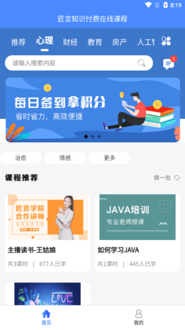知学而进app让学习更加便捷,这是一款付费在线课程学习平台,用户可以在线选购自己想学的专业课程,该软件提供心理、财经、教育、房产、人工智能等课程在线学习,省时省力,有需要的朋友快来下载体验吧。